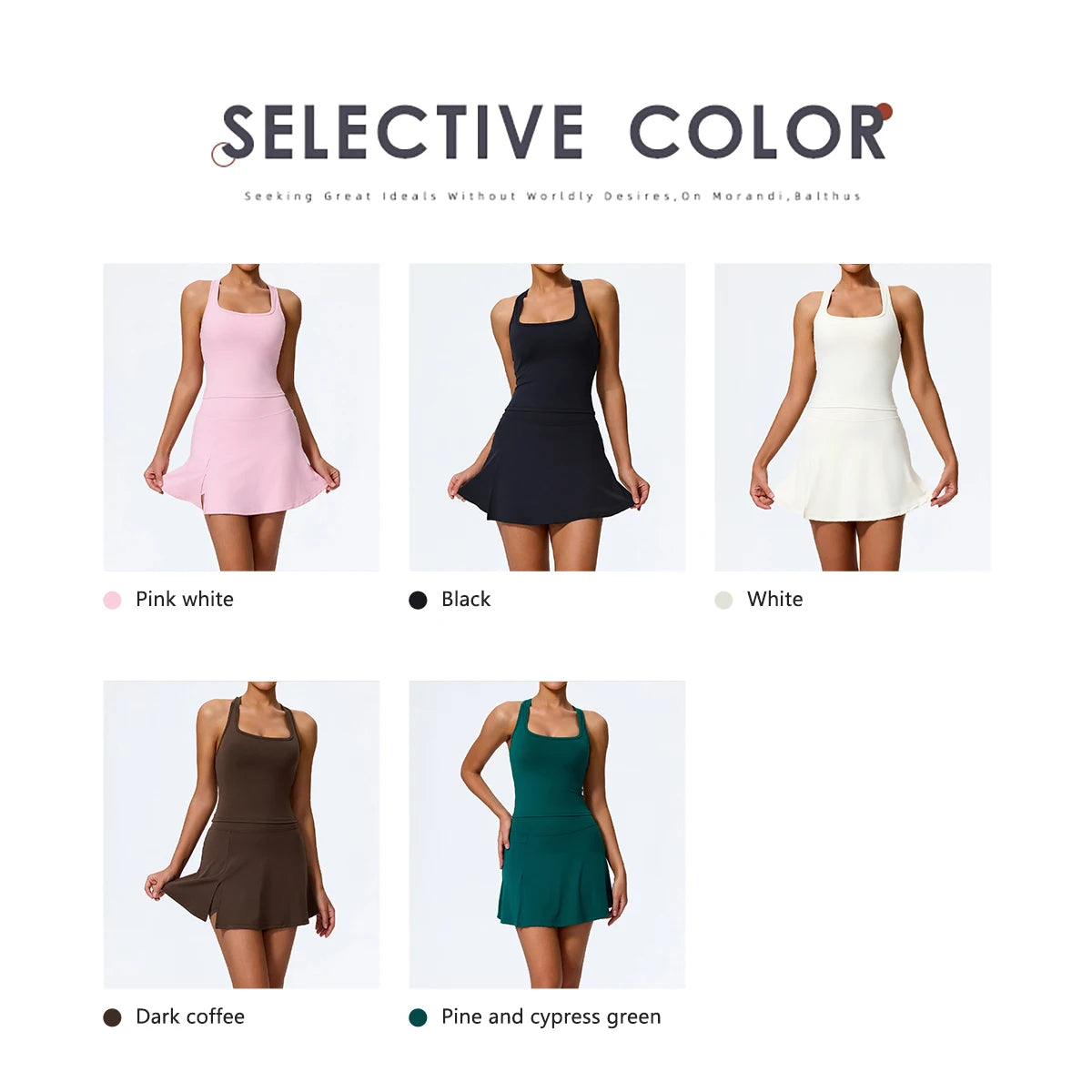 - Set Composition: Includes tank top and skirt with built-in shorts.